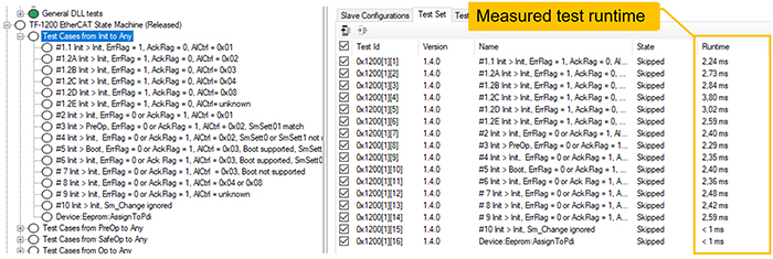 Different slave configurations can be tested – with different process data, Distributed Clock settings, module configurations, etc.